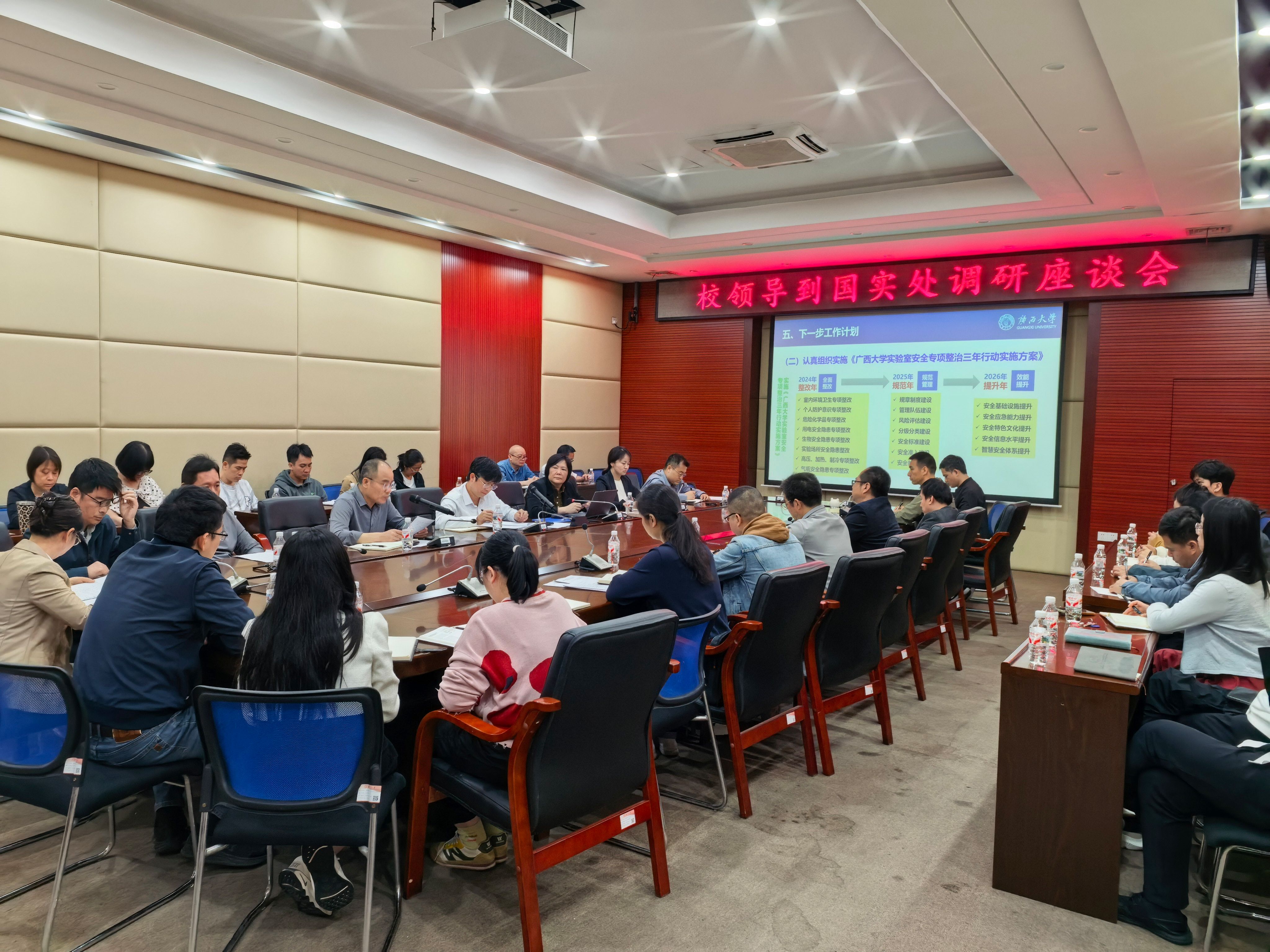 座谈会上,卢婵江处长代表部门作题为《锚定战略目标,谋求高效发展——聚焦十五五中心工作,提供平安优质高效服务》的汇报,简要介绍本处的主责主业、人员结构、职能分工、重点工作、阶段进展等总体情况。各分管副处长、处长助理及分析测试中心主任分别就招标采购、实验室安全管理、资产盘查、资产管理、实验教学中心建设、重点项目推进、数智化建设、大型仪器设备共享等专项工作逐一进行汇报。